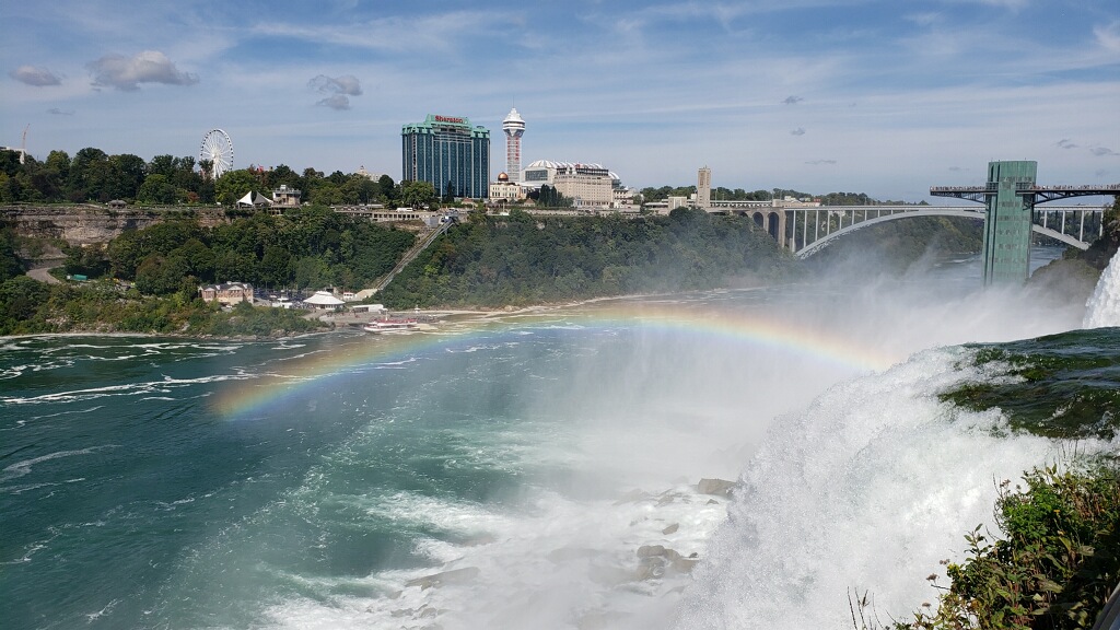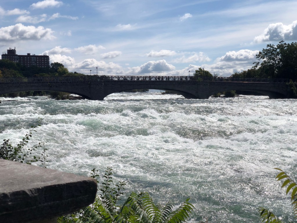 The Rainbow Bridge to Canada is in the background