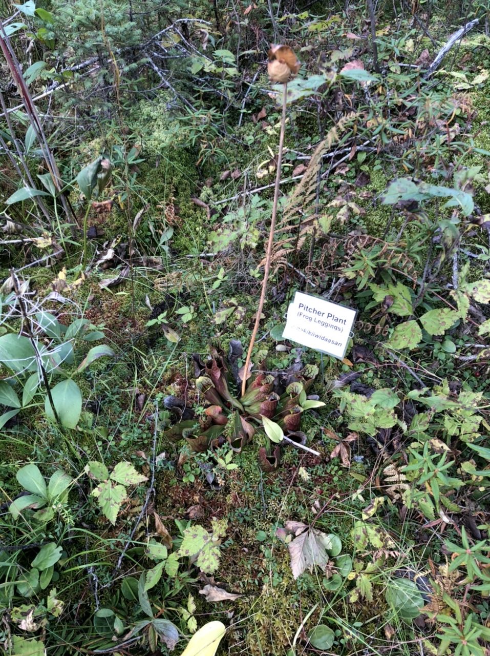 The bog is a peat bog, with very slowly draining water and very little oxygen beneath the surface. As a result many of the plants that live here have adapted to getting most of their nutrients above the water’s surface, rather than through their roots. There are insect-eating plants, sun seeds and pitcher plants, that grow here. Sun seeds are like Venus fly traps, closing their leaves on insects that land on them. They are able to recognize when something inedible has landed on them, like a pine needle or an insect too large to consume, and they don’t close their leaves around such things.