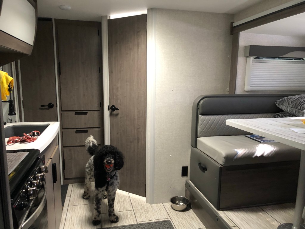 October 10, Columbus Day and Indigenous People’s Day, was also a free day for us. On free days we try to do something fun with Gracie. On our tour days she spends a lot of hours alone in Wanda2, and that’s not a good thing for a high-spirited poodle. So we take her out and give her a run as best we can.