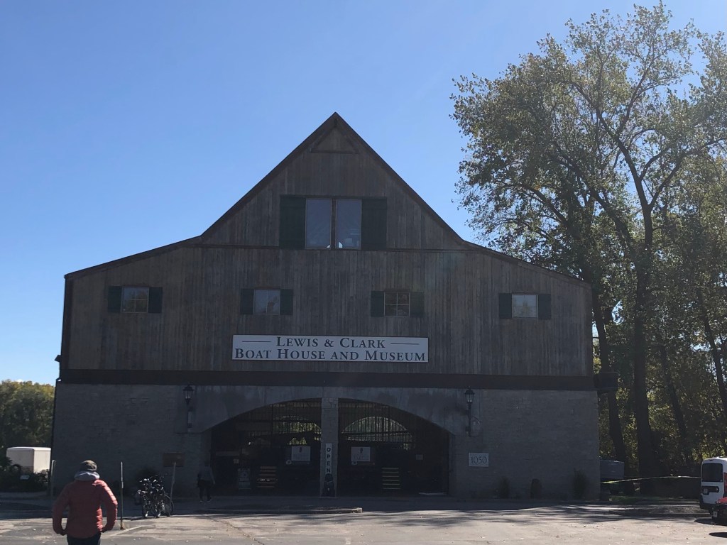 A tug pushing a barge up the Missouri River just outside the museum’s grounds. The expedition began on the Missouri and ended at the mouth of the Columbia River where it meets the Pacific, a year and a half later. The return trip was made in 9 months!