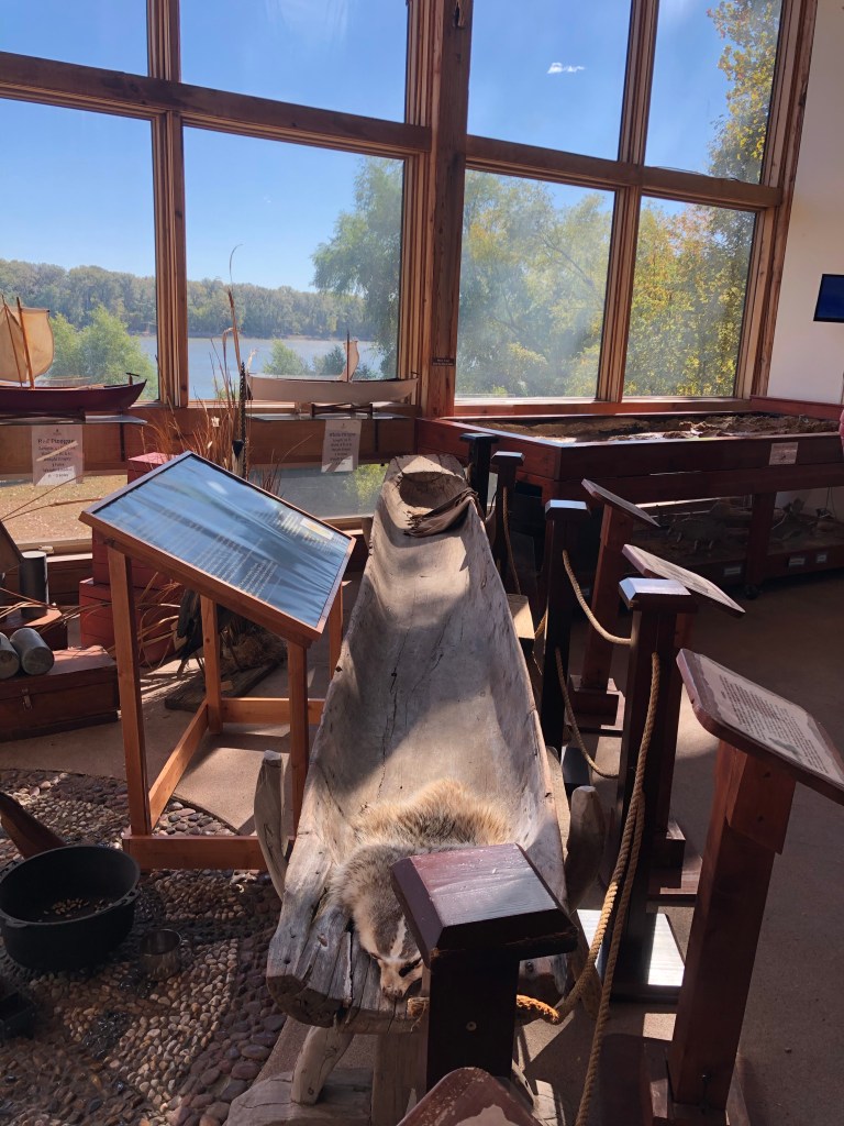 An actual 19th century dugout canoe, made of an Osage Orange log. The Corps of Discovery would have used boats like this on the expedition.