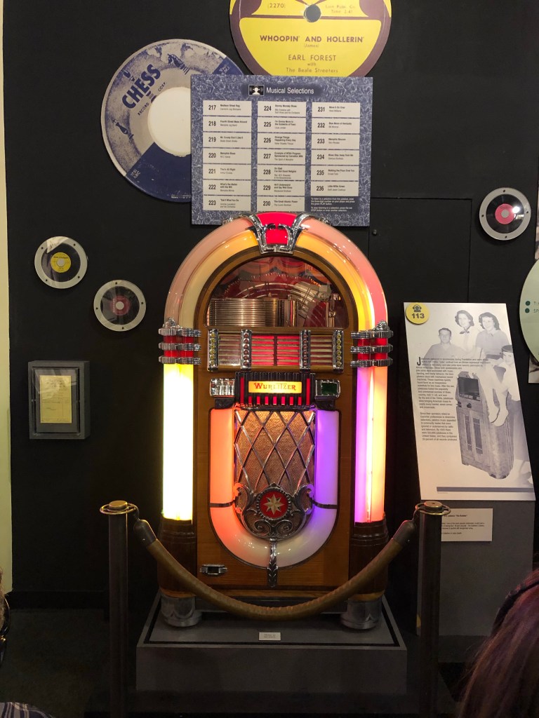 Memphis also has the Rock and Soul Museum. This one was curated by the Smithsonian and located in Memphis, the only Smithsonian museum located outside of Washington DC. It tells the story of rock and soul from their birth in sharecropper work singing, to blues performed on the streets and on the radio. The music of these two eras was often integrated, as was the culture that spawned them. But as society changed, music branched into rock, a primarily white genre, and soul, primarily a black genre. This museum tells the story of this musical evolution through compelling exhibits and song lists that can be enjoyed along with the visual information. It’s a wonderful experience!