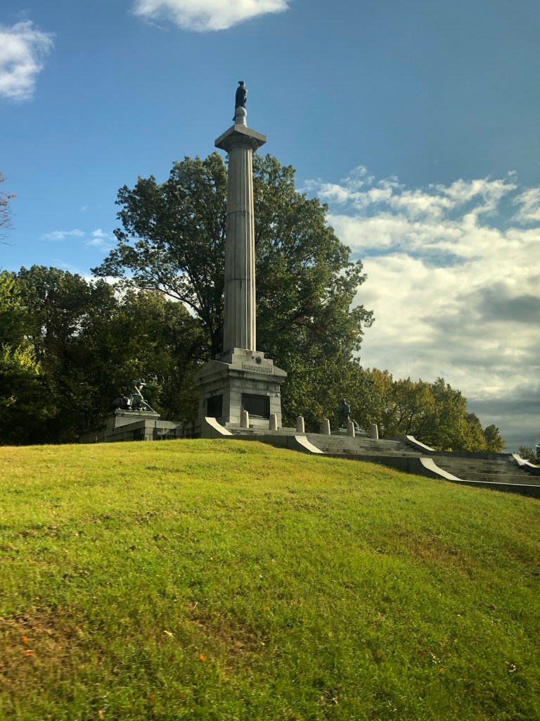 When you visit the national park at Vicksburg today, you see a steeply rolling series of hills covered with monuments to the regiments that fought here. The armies of both sides were not a single force run by a central government. They were all populated by state militia regiments and managed by generals appointed by the central leaders of both sides. So when the park was laid out, the states who sent militias to fight here were invited to contribute memorials for their troops. Each state came up with their own designs and approach. As our tour guide said, this is probably the largest outdoor sculpture park in the world.
