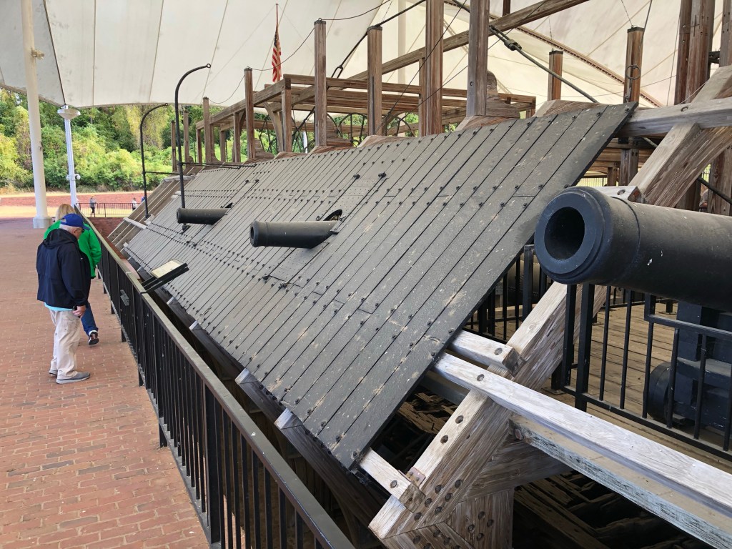 The park includes a museum for the Navy that fought at Vicksburg. The Navy played a critical role by getting supplies to the Union army under cover of darkness when the army first moved into position around Vicksburg. The ironclad Union ships were also used in the bombardment of Vicksburg from the river. The museum includes a display of the USS Cairo, an ironclad ship sunk by mines. The remains of the ship have been recovered and put on display in front of the museum building.