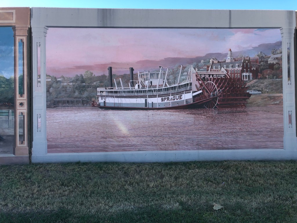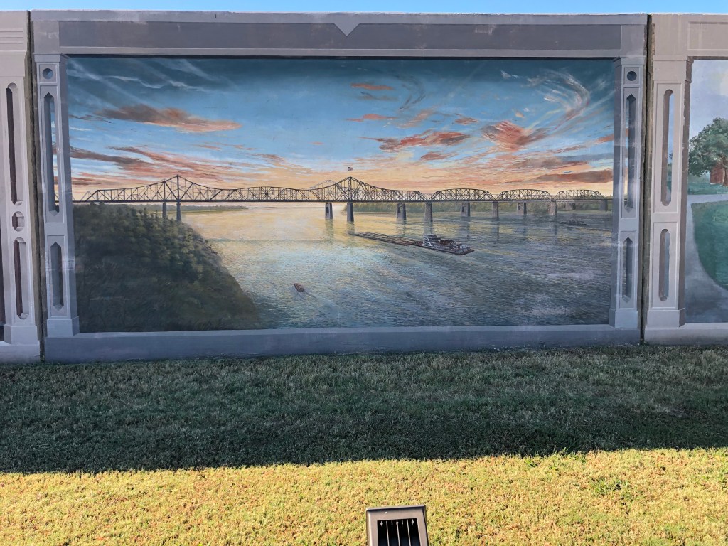 We made one more stop before we headed back to our campground. Vicksburg has a display of 32 murals painted on the floodwall of the Yazoo Diversion Canal. Each mural is sponsored by a different Vicksburg civic group, professional group, ad hoc group, or individual. All were painted by the same artist, Robert Dafford. Subjects for the murals were chosen by the sponsors. They represent a wide range and scope of Vicksburg community history. Here are a few selections: