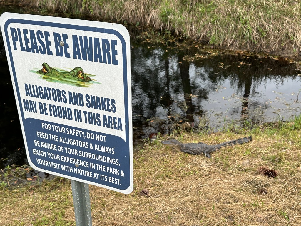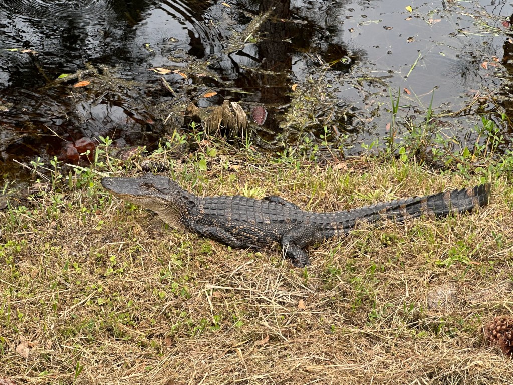 Still, we had plenty to enjoy during our month on the Alabama coast. Gulf State Park has 28 miles of trails that can be walked or biked, and we covered almost all of them at least once, and many quite a few times. The trails wind through the swampy areas that surround the campground. Many sections are elevated to keep travelers clear of the wet ground below. The wildlife is abundant throughout the area. During our walks on these trails we met …