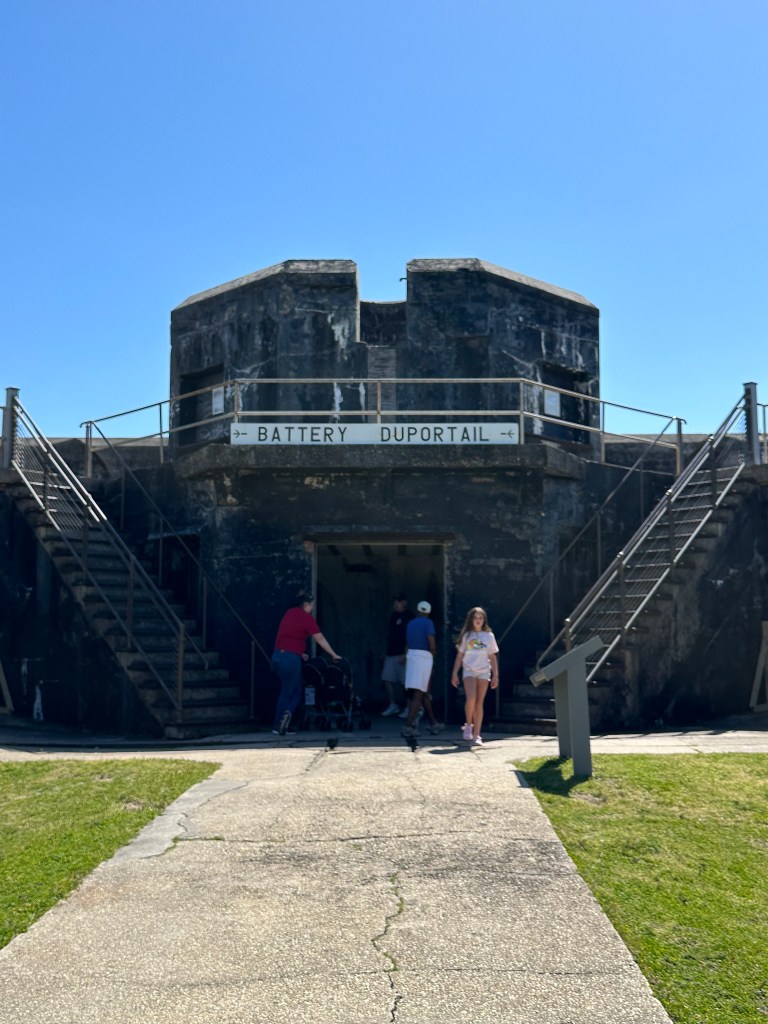 The fort is five-sided, with a battery of artillery on each side. Battery Duportail faces the Gulf of Mexico.