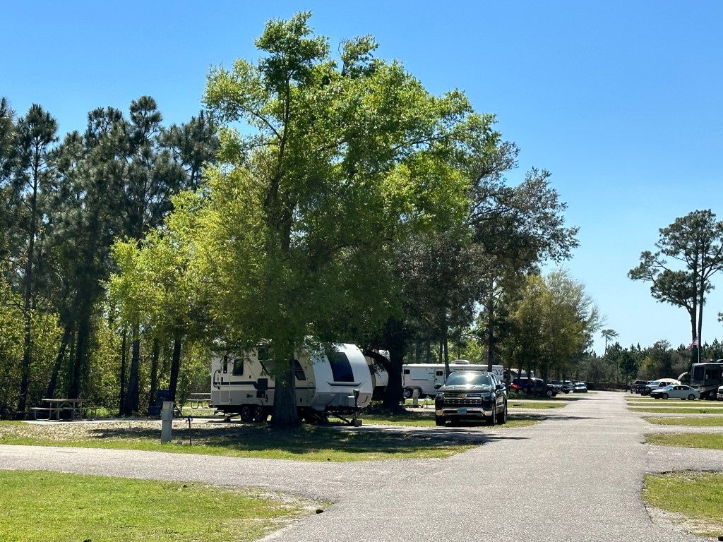 And then there were the “short-termers” who were there for just a few days. At the beginning of our stay, the long-termers far outnumbered the others. But as March wore on and the weather improved, the park began to fill up, especially on weekends. The typical snowbird population was gradually overtaken by families and a younger crowd in general. We started to see swimsuits replacing the baggy jeans and sneakers on the bodies walking up and down the roads. By the end of our stay, the snowbirds had mostly flown, some to another destination on the road and others to their “permanent” homes in cooler climates. As we prepared to leave the park for our next destination, our previously lively neighborhood was quite deserted!