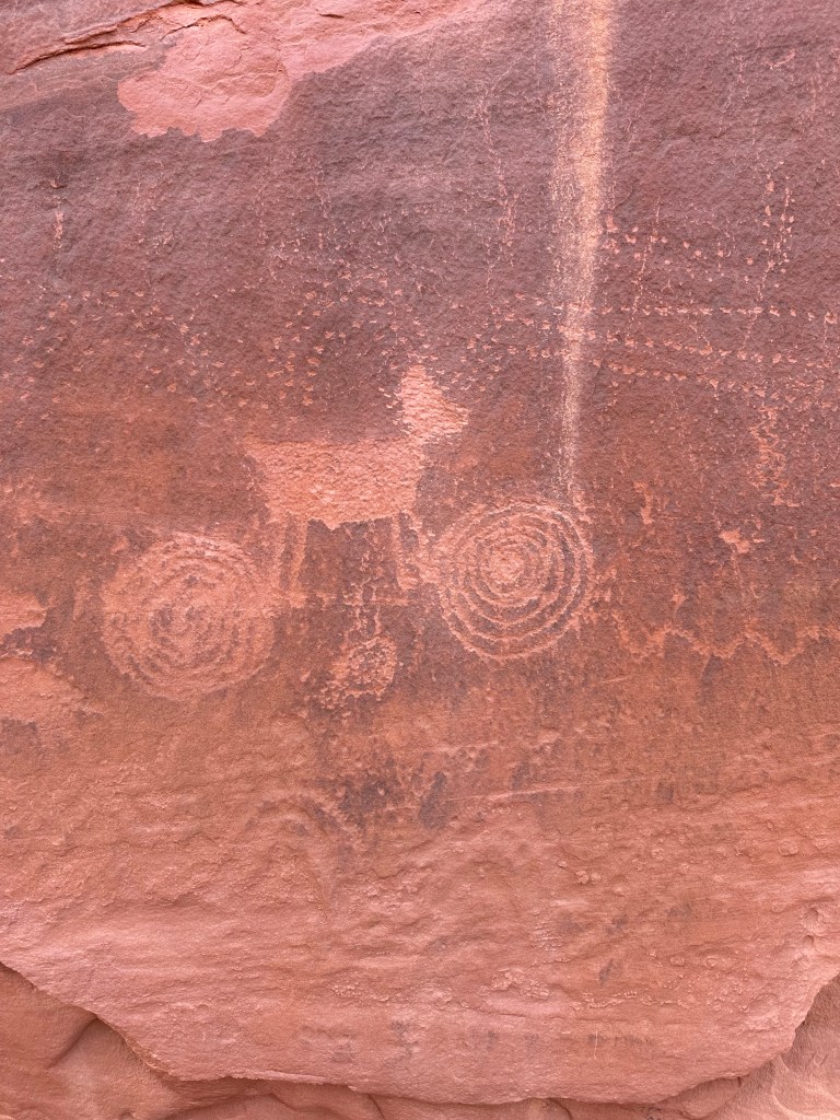 Near these caves was a wall absolutely covered in a wonderful mural of petroglyphs.