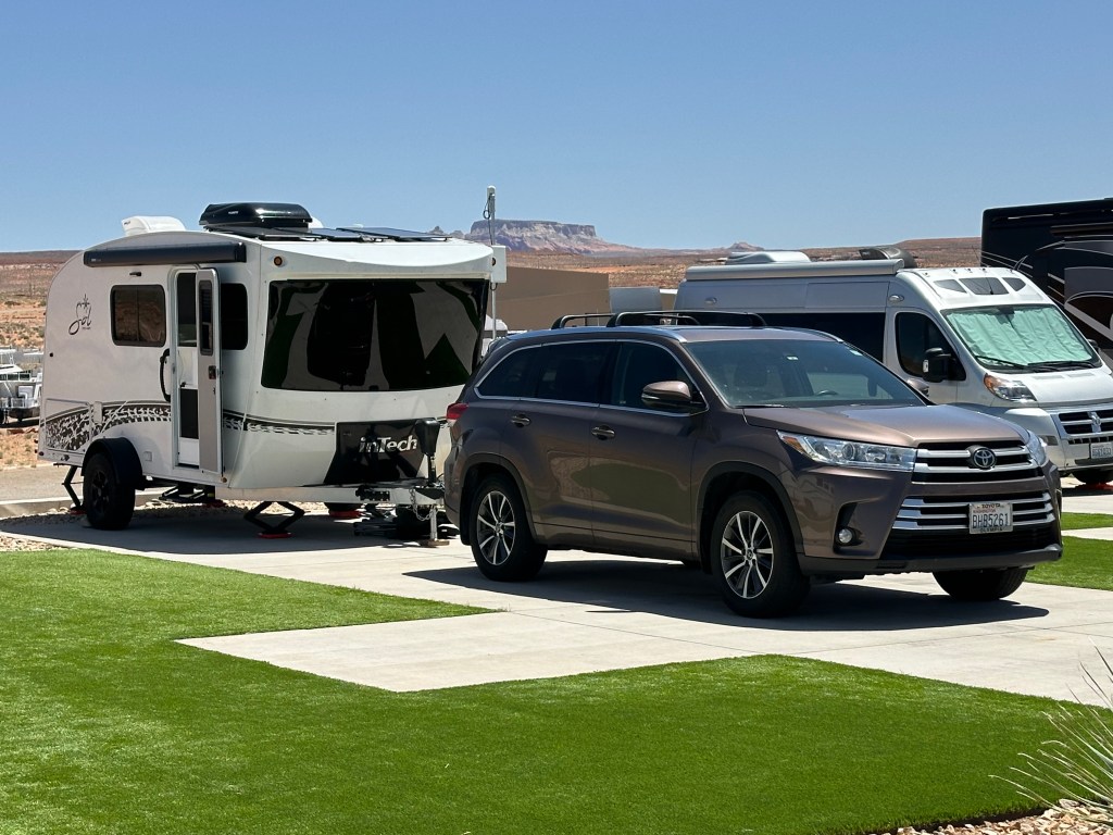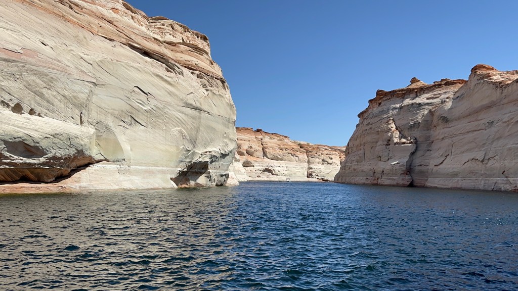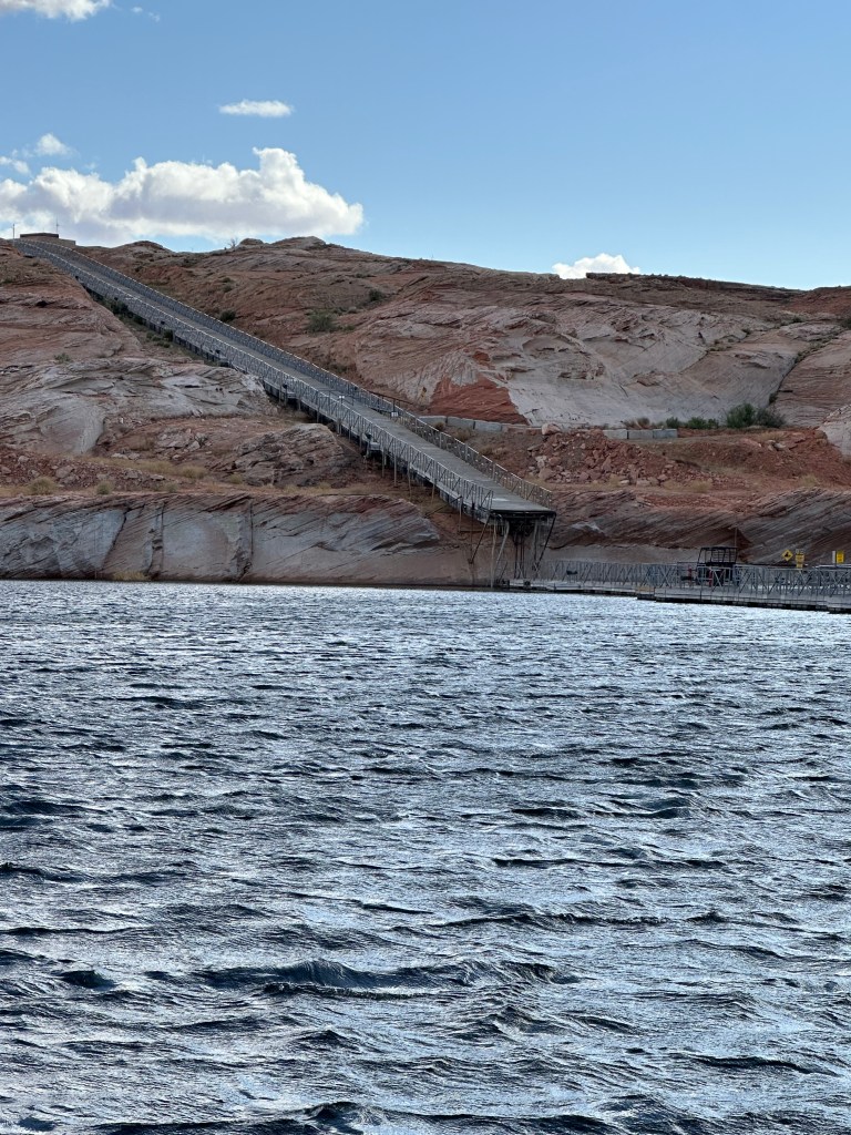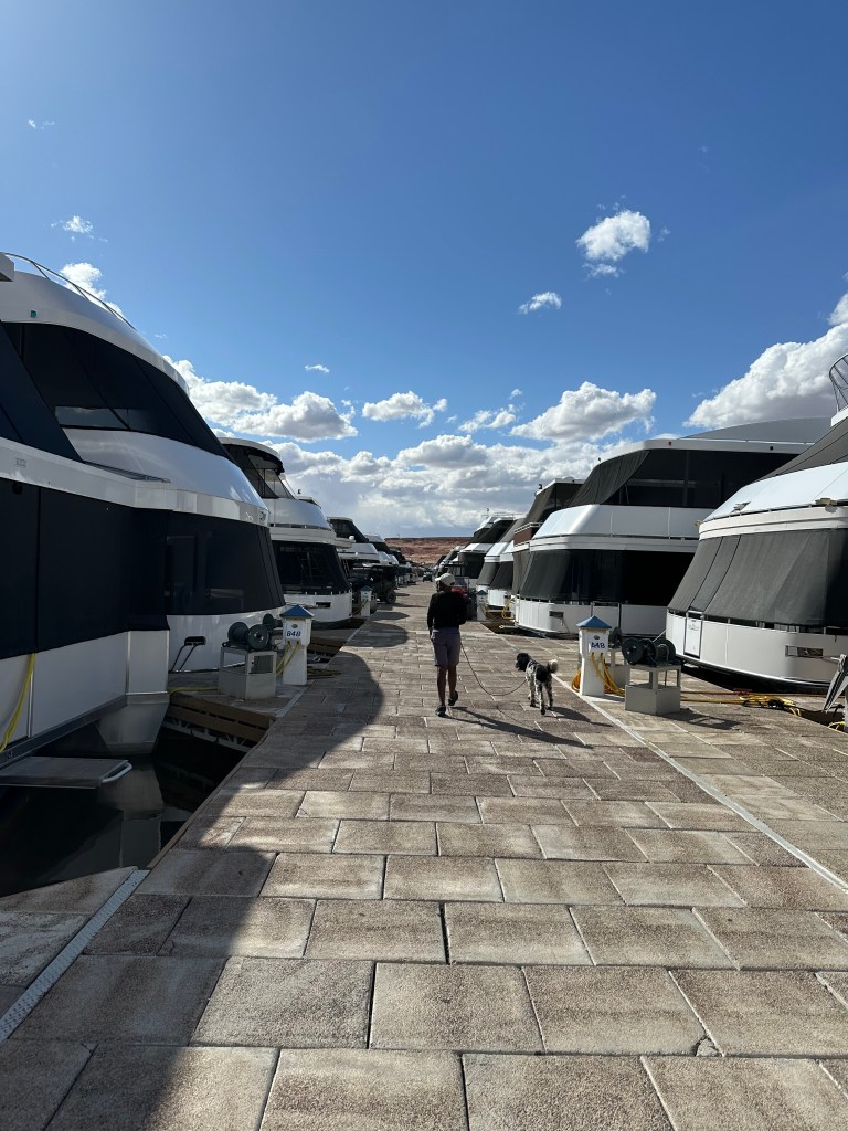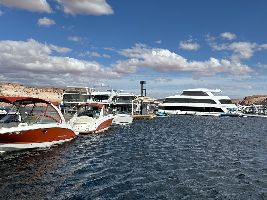 Our next stop on our journey north and west – Lake Powell, an enormous reservoir filling Glen Canyon behind the Glen Canyon Dam. It’s the centerpiece, although certainly not the only feature, of Glen Canyon National Recreation Area. We camped at Antelope Point RV Park for a planned two days.