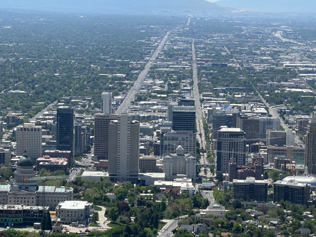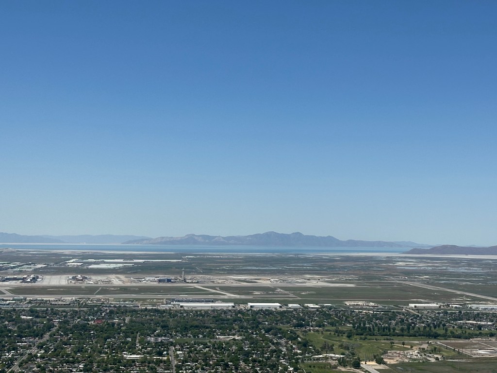 Our backroad route to Salt Lake City eventually took us past Utah Lake, a very large natural freshwater lake with an enormous amount of development surrounding it. We noticed that the lake is a very unnatural color, almost appearing pearlescent on the surface. We saw no boats on or around it either. The lake has water quality issues that are the focus of a lot of research. Hopefully action can be taken to restore the water to a healthier level. It was quite surprising to see this after traveling through so many beautiful places for so many weeks!