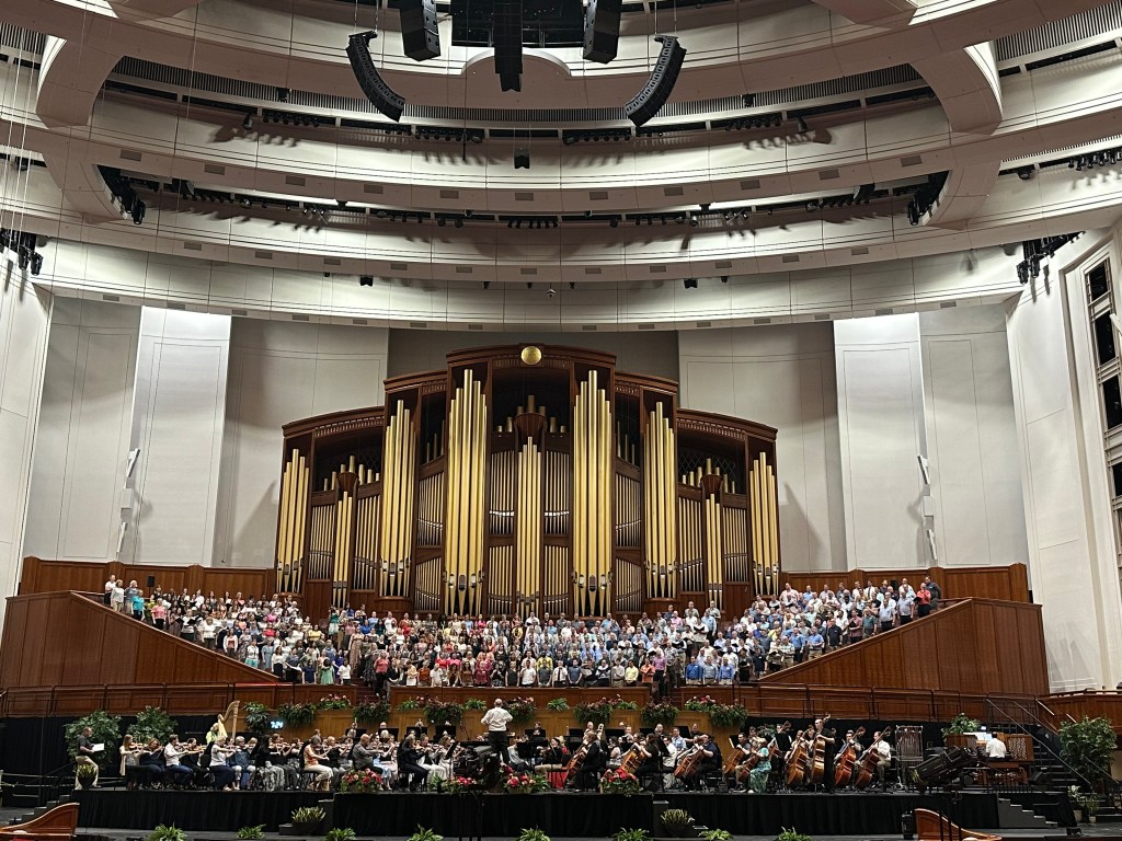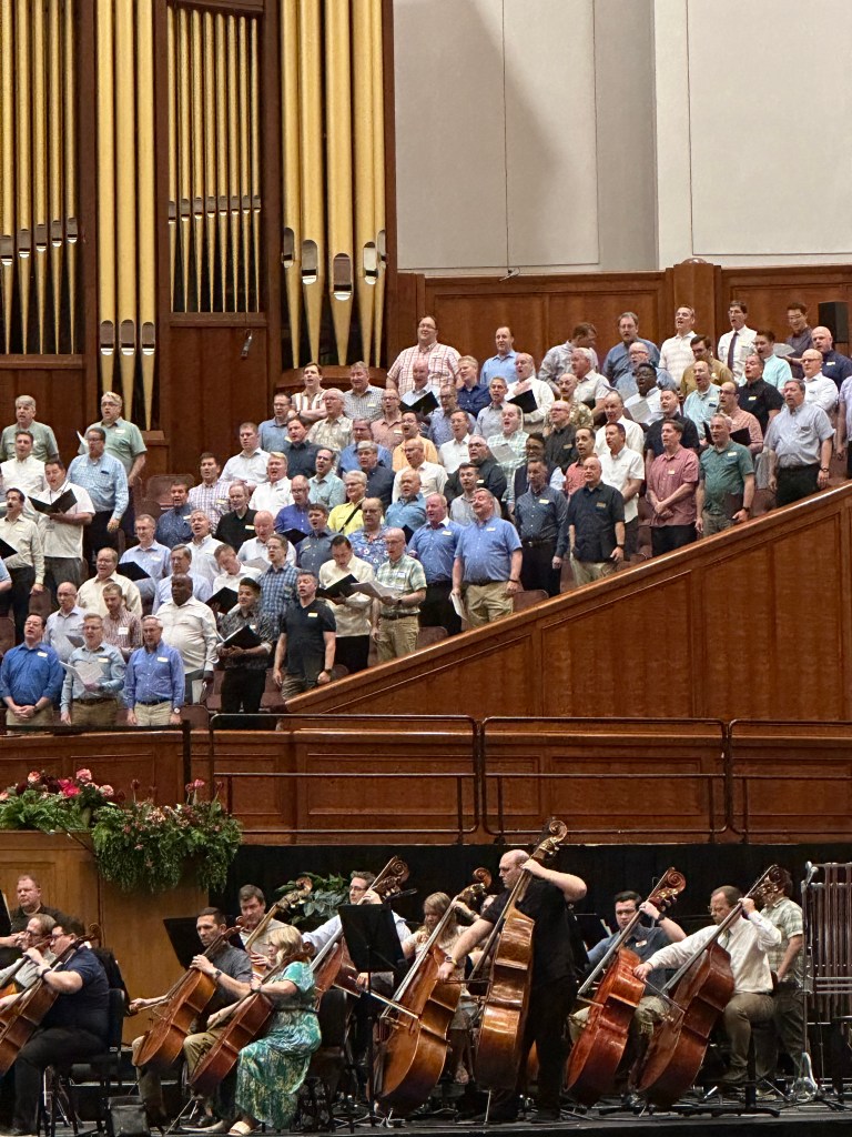 The conference center is new and somewhat replaces, or augments, the original tabernacle. I don’t have a photo of the tabernacle, but here is some good information about it. While it is an architectural and acoustical marvel, its seating capacity of 3,500 is clearly limited compared to that of the conference center. Still, it would have been great to hear the choir in its original home, but it was amazing to hear it in its new surroundings too!