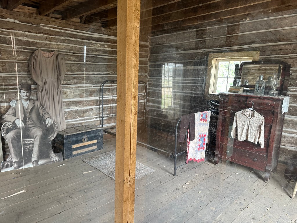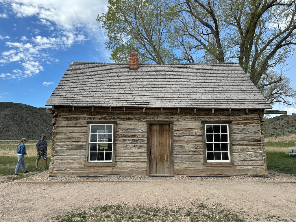 As we were leaving Panguitch, I told Ms. Google Maps to avoid sending us on highway routes. We had US-89 taking us on a nice-looking ride, and Ms. G kept shoving us toward I-15. Once I put a stop to that, we rumbled along on our preferred route and found ourselves very shortly at the boyhood home of Butch Cassidy. Those of you in my generation no doubt remember the movie with Paul Newman as the swashbuckling outlaw, and his sidekick Robert Redford as the Sundance Kid? Seems as though Mr. Cassidy spent some formative years in this little cabin on the outskirts of Panguitch, Utah. And a dedicated Director of the Utah Division of Parks and Recreation saw to it that the property was restored and maintained to commemorate this local celebrity.